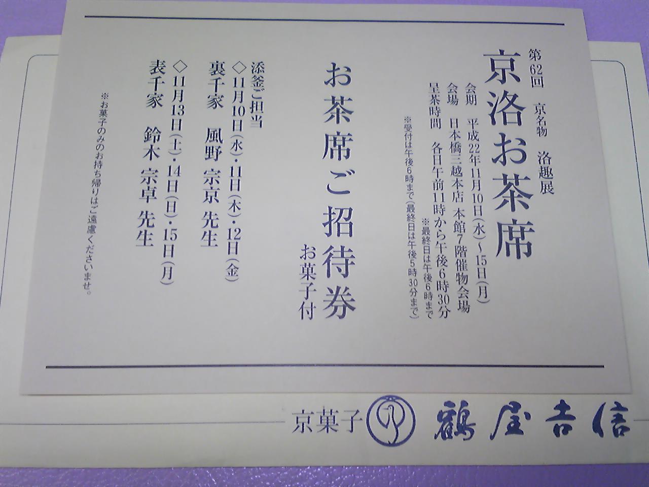 今年もチケットいただきました\(^o^)/お茶席以外にも京都のお店がたくさん出ていてなかなか楽しかったです♪興味のある方はお声をかけていただければチケットさしあげますよ、枚数限定なのでお早めに(^_^)v