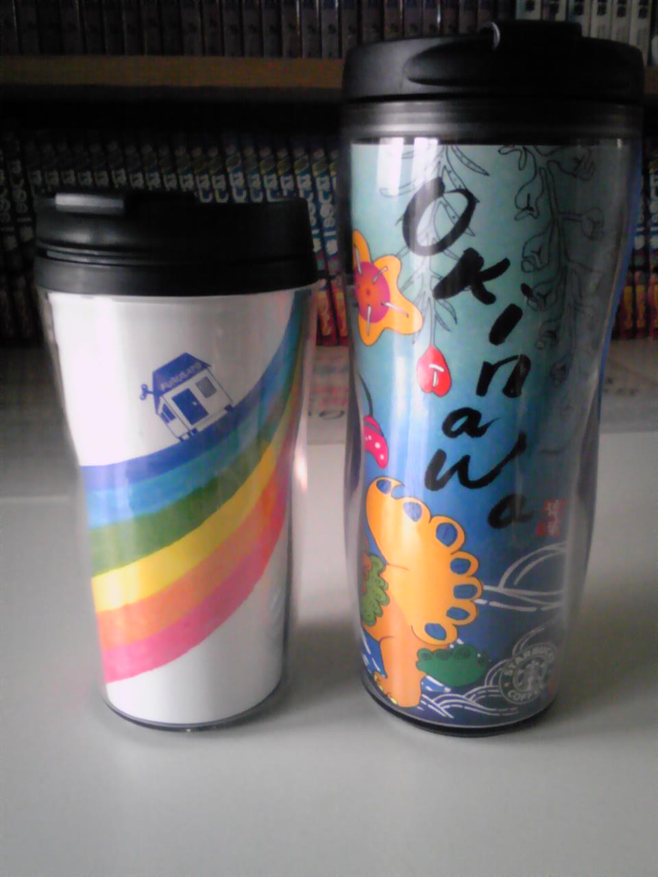これは私と世良先生のタンブラーです。左が私のタンブラーで先日ゆずのコンサートで購入しました。右が世良先生のタンブラー、沖縄柄です。