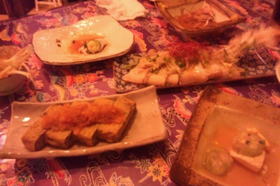 この日は、他にオリオンbeer、どなんを飲んで、ナーベランブシー、沖縄焼きそば(当然ケチャップ味) ソーミンちゃんぷるー、アーサのかき揚げ、ポーク玉子、ジーマミ揚げ出しとかいただきました♪みんななんの料理か名前聞いてもわかってなかったけど(^_^;)