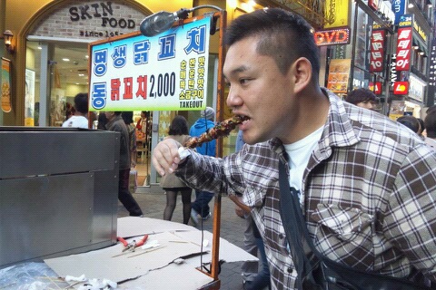 食べ歩きの合間にコスメあさり。ロッテ百貨店で目の下のくま、しみ、お肌のはりぐあいが良くなるパックをつけてもらう♪この後一時間くらいこのままソウルの街を歩きました(^_^;)