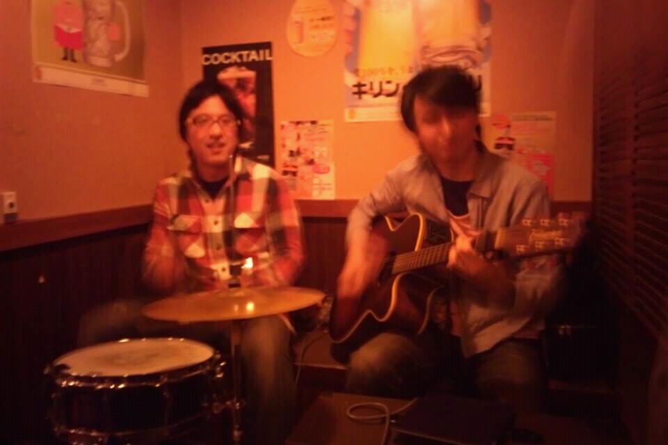 演奏中のシンくん(ドラム)とミヨくん(ギター)♪
