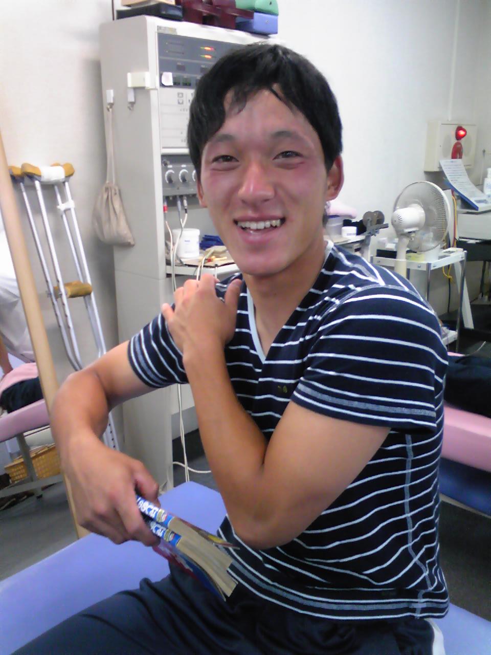 今日はファビリテーションの紹介です(^O^)/ 当院に通っている農大野球部の橋本くん、先日スライディングでお尻を痛めたとのこと。 ファビリテーションをおこなうとすっかり良くなった(゜o゜) 続いて肩の痛みにもアプローチしてみると・・・ 驚くほどに痛みが消えた(゜o゜) 最後にバッテリーの河崎くんと笑顔でツーショット(^O^) これからも患者さんの笑顔のためにがんばります(^_^)v