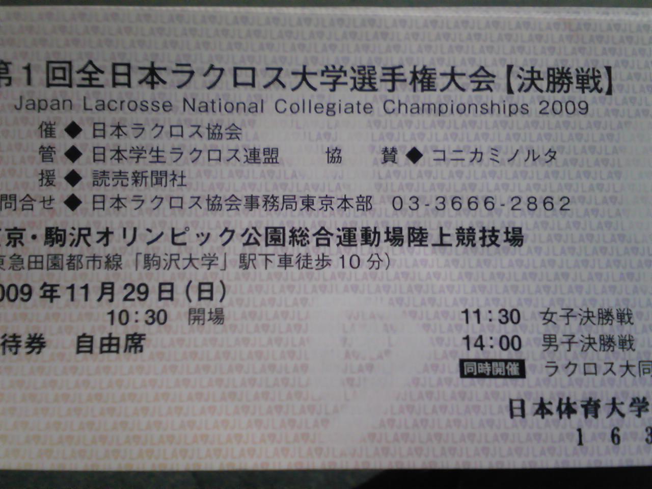 今度は東西のNO1を決める全日本ラクロス大学選手権大会決勝戦があります!!会場はさらに大きくなり駒沢オリンピック公園総合運動場陸上競技場です!(^^)!