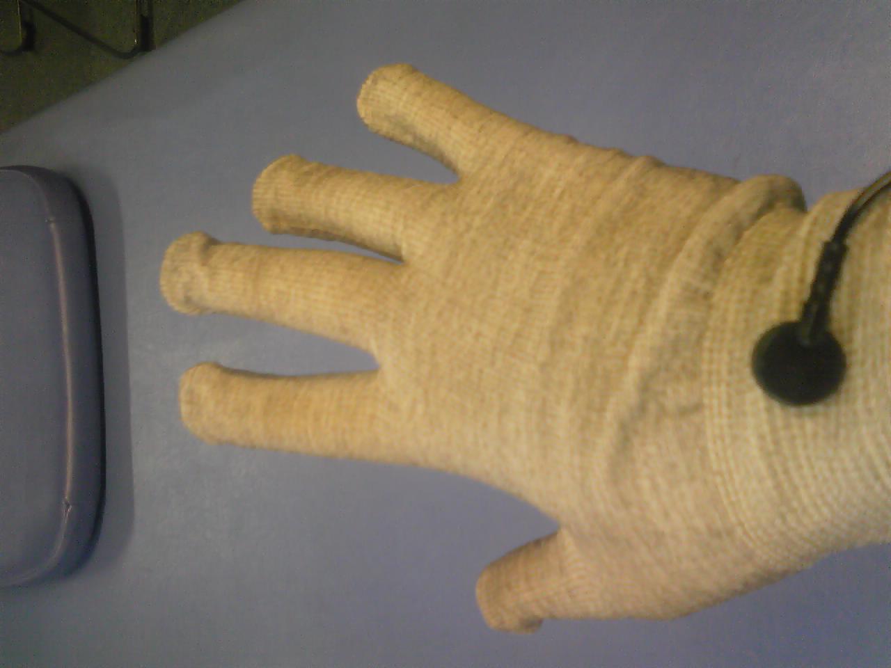 今日は近隣の体育大学に通うアメフト部の患者さんが歩くだけで膝の周囲が痛くてしょうがないということでこのグローブ型の端子を使い施術をしました。グローブをはめた手で患部をなでながら患者さんに膝をゆっくり動かしてもらうこと約2~3分。立ち上がって歩いてもらうと「痛くない」とのこと。