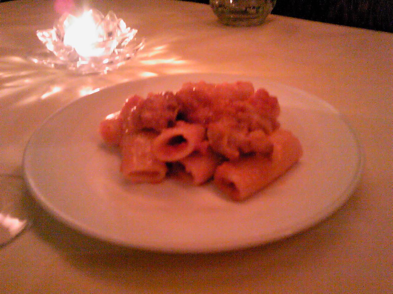 これはパイヤータという料理で牛の小腸をトマトで柔らかく煮込みリガトーニと絡めてあります。