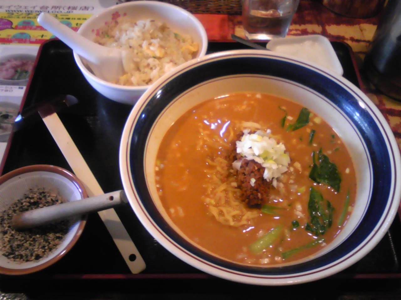 今日は坦々麺と半レタスチャーハンのセットを頼みました。これに杏仁豆腐が付いて680円!!チャーハンの代わりに餃子にもできます。お弁当は480円とさらにお得!!