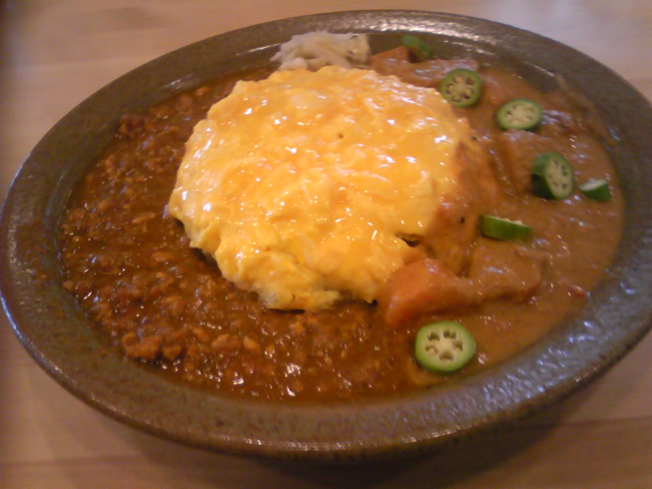 パクチーハウスのキーマ&野菜カレーにオムレツをトッピング♪