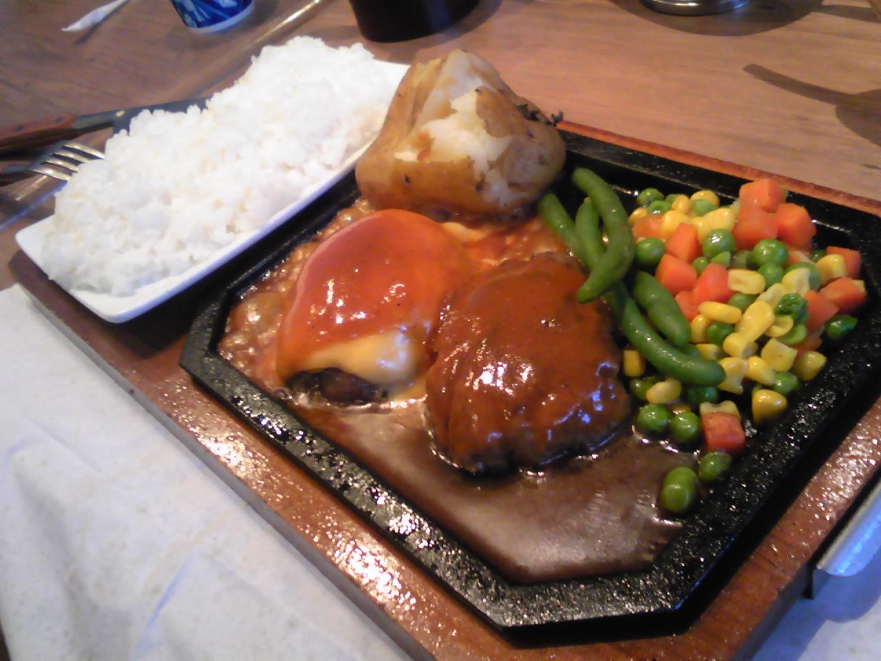 今回はハンバーグをオーダー。値段も手頃でとってもジューシーなお肉をいただきました(^u^)