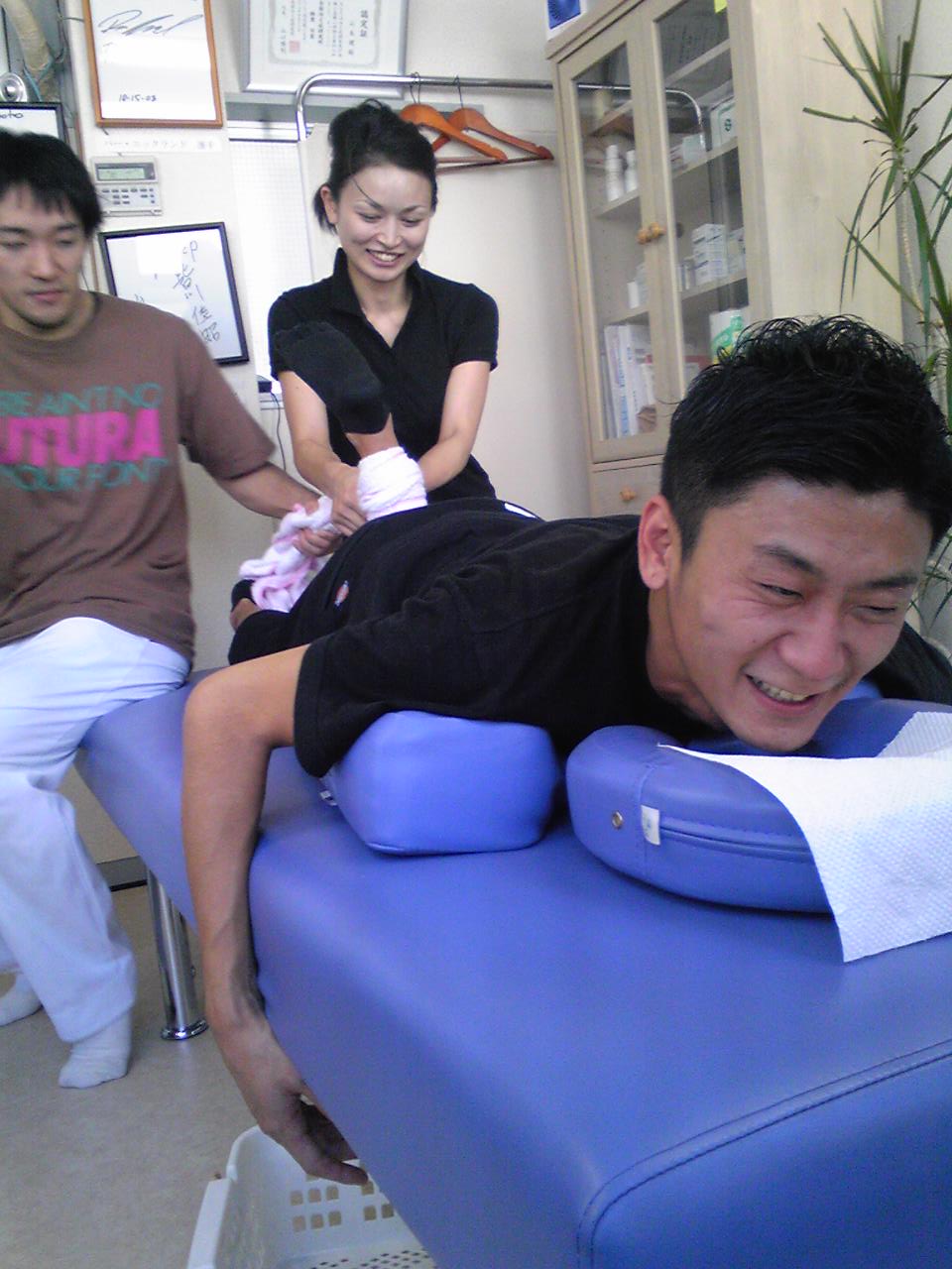 そしてハムストリングスを鍛える中野先生、きつそうですね(笑)