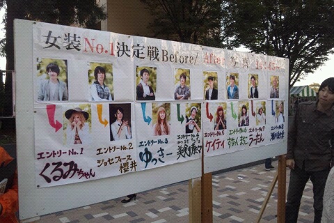 女装コンテストなんてのもやってました。歩き方と姿勢が残念(^_^;)それをかえるだけでだいぶ女の子らしく見えるのに!葛西が出ても3位くらいは狙えるな(^o^)v
