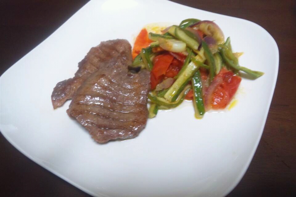 牛を食べたぜっ笑。いただきものの、加賀野菜のイタリア風ソテーと利久の牛タン。