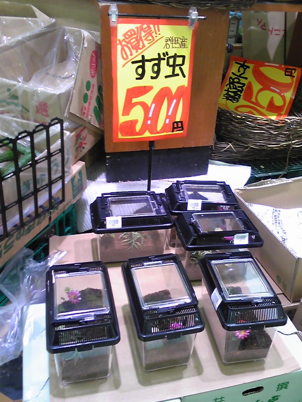 スーパーでこんなん売ってました。 こどもの頃に夏にはよくすず虫の鳴声を聞いた気がする(~o~) 今はスーパーで売ってるんですね。