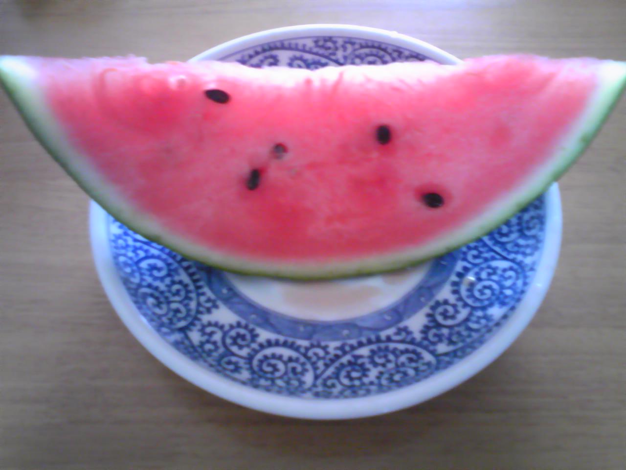 スイカを食べました♪鳥取産のブランドスイカらしいです(^O^)実家に帰って旬のものを食べてばっちり元気になりました\(^o^)/