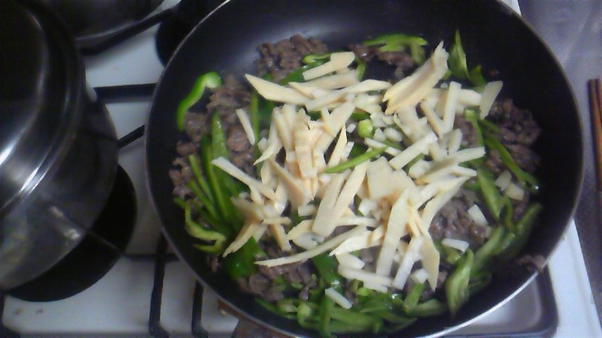 こんにちわ! 清水です! この間、久しぶりに時間をかけて青椒肉絲(チンジャオロース)を作ってみました。 オイスターソースを使って作ったので広東風っぽい感じです。 ↓ピーマン切っています(^_^ ↓タレは、XO醤・ごま油・オイスターソース・鶏がらダシ(粉末) ↓牛肉使いました ↓炒めて… ↓出来上がり!