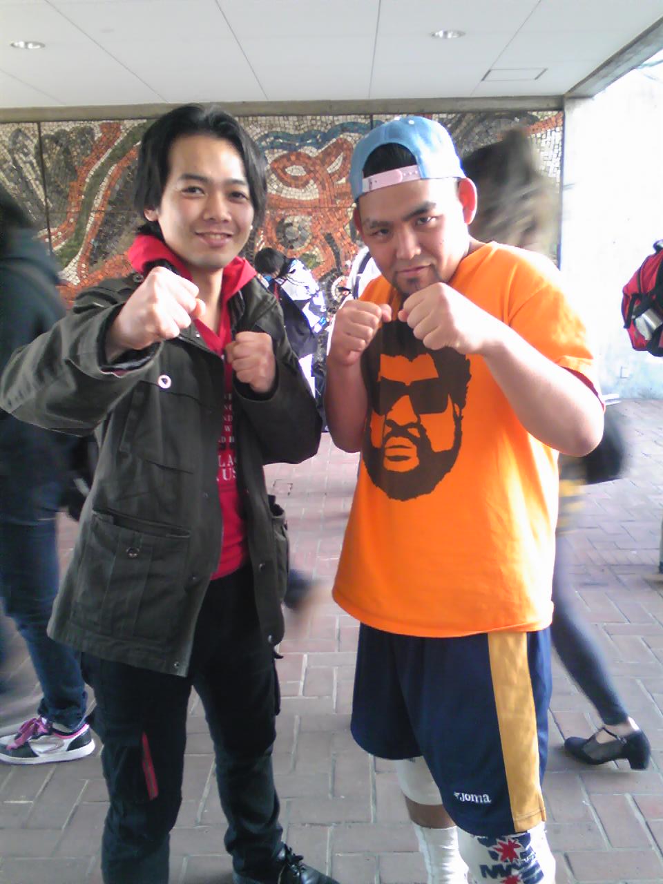 メインをつとめたT・ハーン選手とツーショット、午後のメイン画材デスマッチ(笑)も見事に制しベルトを手にしたそうです。