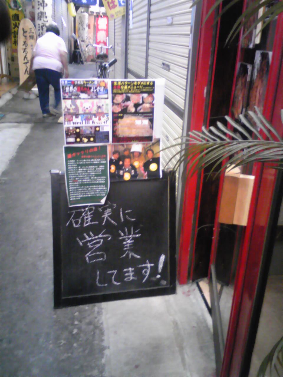 『冷やしもぐら始めました』・・・(?_?)という看板を見つけて気になり路地裏に入ってみると『確実に営業してます』の看板(笑)しかし混んでいたのであきらめて近くの沖縄そば屋さんへ