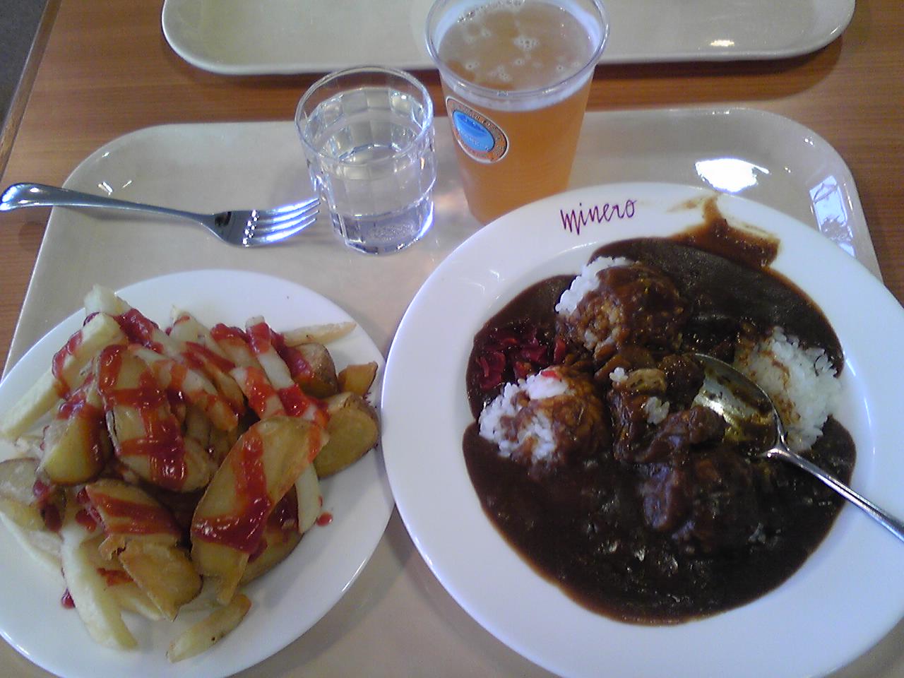 名物ランチのこぶこぶカレーと山盛りポテトです。ポテトは好きなだけ盛ってよいのでのせられるだけ盛りました、もちろん完食です(^_^)vおなかいっぱい食べたい人にはおススメですね。