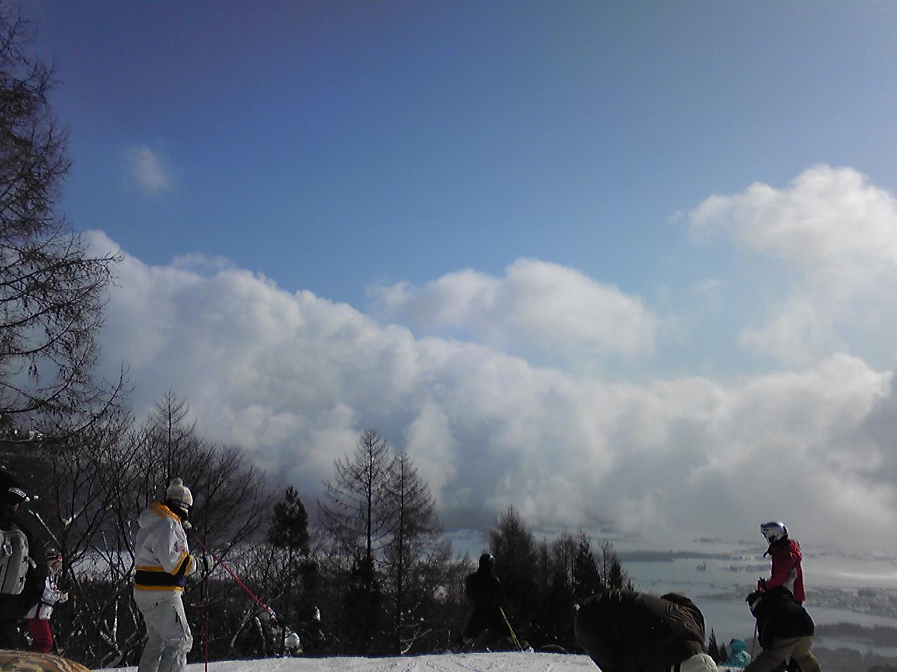 ここも空が近くて気持ち良かったですね、雲より高いところまで登りますからね。雪質も車山よりふかふかでした♪
