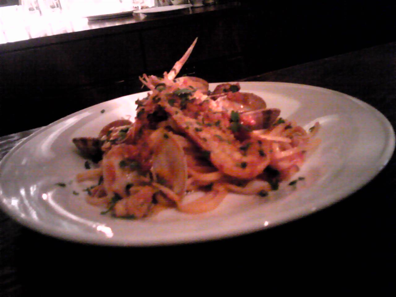 ロッソ(トマトソース)かビアンコ(オイルベース)か選べるので今日はロッソで。海老とアサリの旨味が凝縮されたソースにリングイネが絡み最高です(*^_^*)次回はビアンコでいただきたいですね。