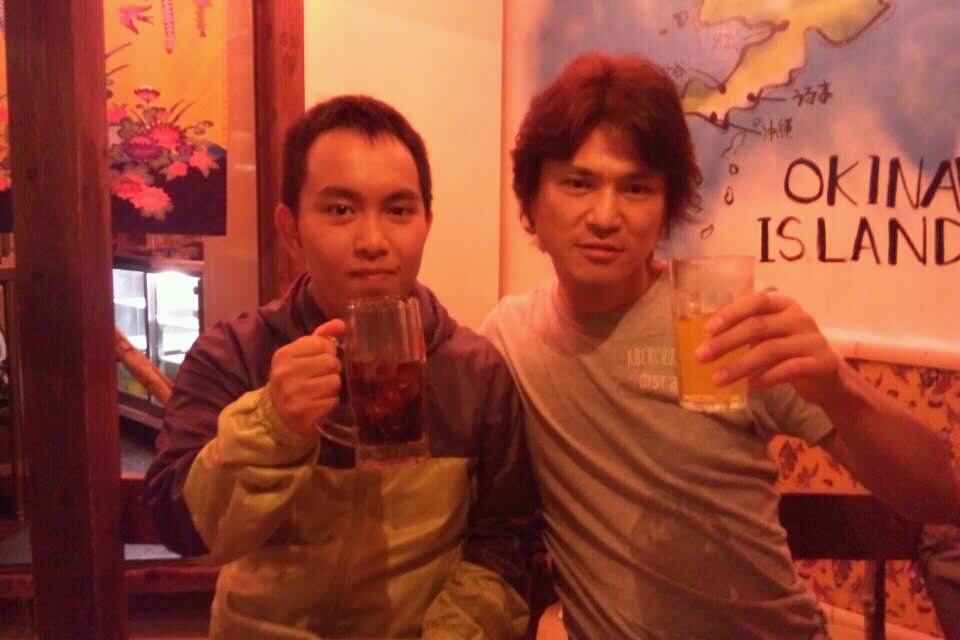藤田さんとtakezoo (^-^)v梶が谷メンバーで溝の口の沖縄料理屋「侍ちゃんぷるー」にいってきましたー