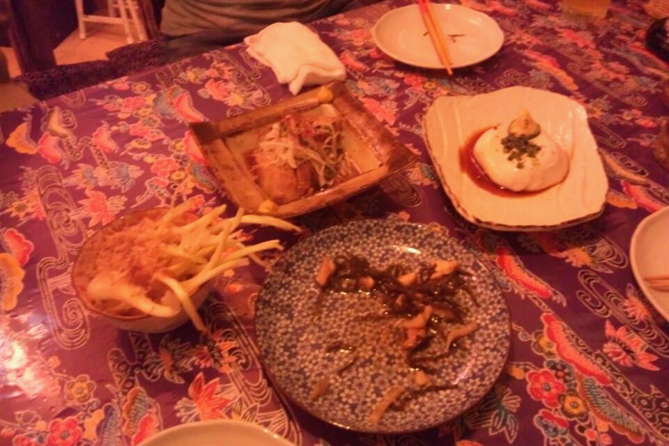 この日は、他にオリオンbeer、どなんを飲んで、ナーベランブシー、沖縄焼きそば(当然ケチャップ味) ソーミンちゃんぷるー、アーサのかき揚げ、ポーク玉子、ジーマミ揚げ出しとかいただきました♪みんななんの料理か名前聞いてもわかってなかったけど(^_^;)
