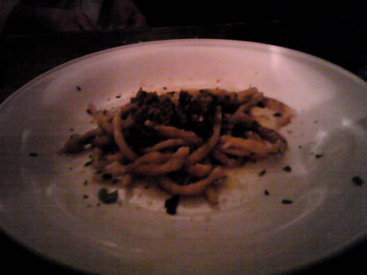 ピンチはパスタの一種で手打ちのうどんのような麺です。猪の濃厚なラグーが絡まりもちもちとした食感がたまりませんね(^u^)