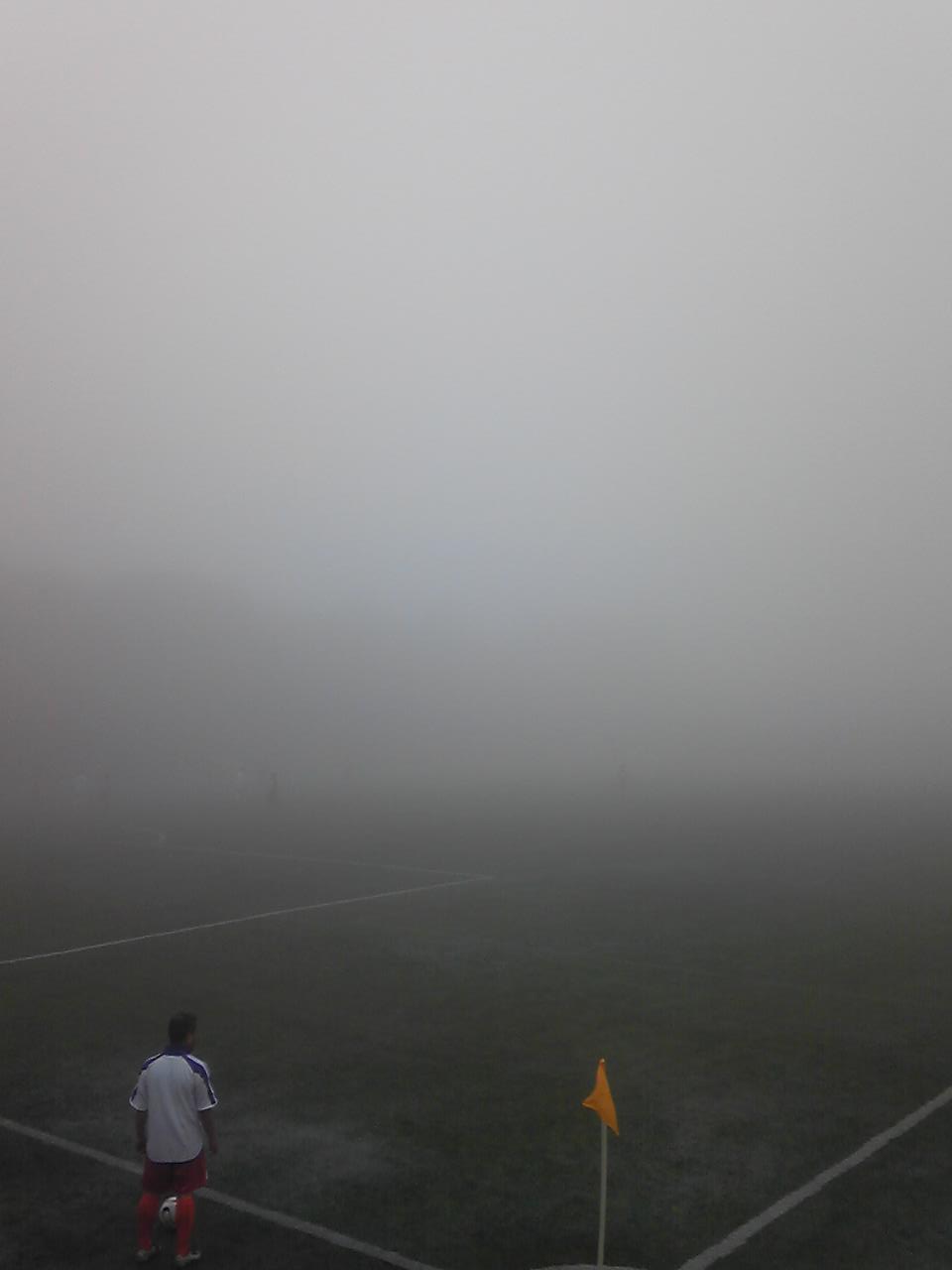 反対側のゴールどころか数メートル先の選手も見えません(?_?)
