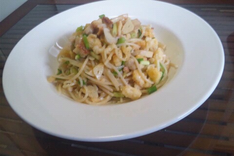 エリンギと小口ネギのクリームOFFカルボナーラ。