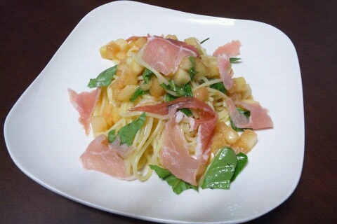 パーティーの試作で作った生ハムと白桃の冷製パスタ。