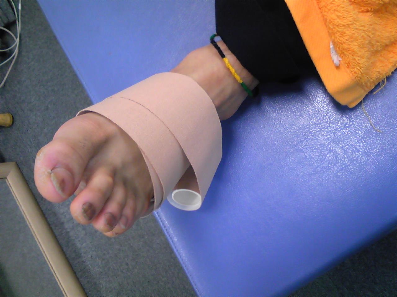 足にファビリテーションテープを巻いて10分ほど安静にしてもらうと・・・