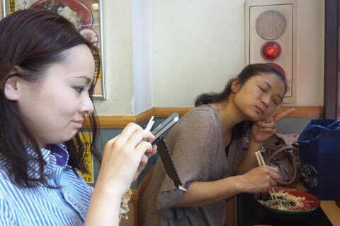 施術後富士そばにて(^o^)眠くて仕方ないけーこセンセと忙しいふりをしているさき子笑