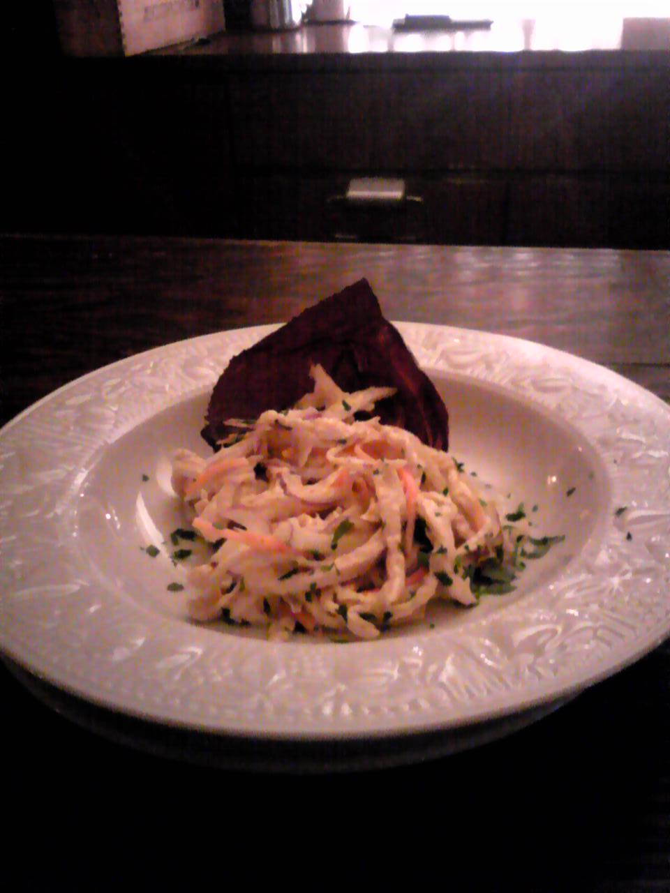 まずはアンティパスト(前菜)に大山鶏とセロリのマヨネーゼ。セロリの爽やかな香り、シャキシャキの食感に鶏のうまみ、自家製マヨネーズの甘み、オリーブオイルの香りが一体となり腹ぺこなおなかを落ち着かせてくれます。