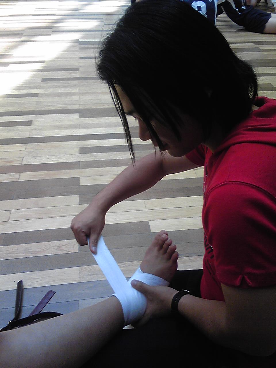 今回はOGの先輩たちもたくさん駆けつけてくれ、声を出し続け必死に応援してくれました(^_^)v写真はOGの子に包帯を巻いているところです、試合はもちろん参加してませんが(^_^;)