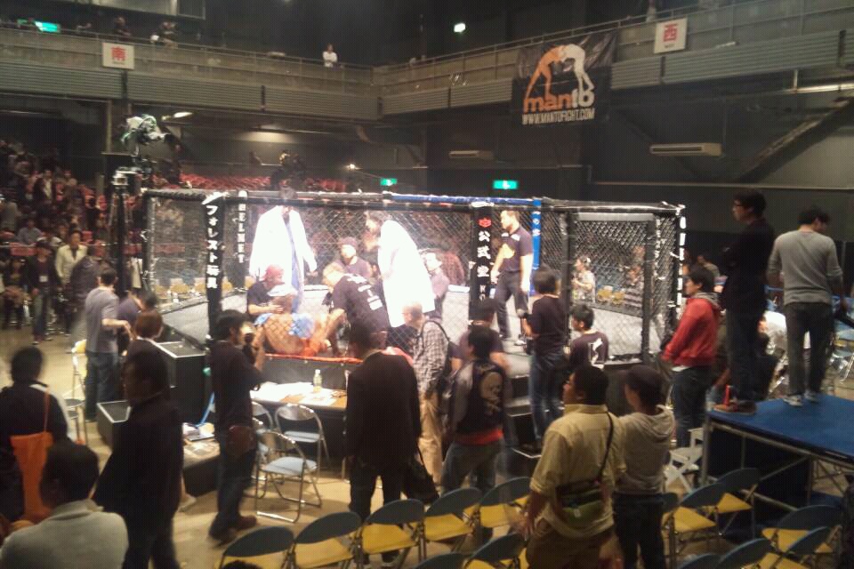 試合終了後に一枚。今回はゲージファイト!こーんな金網の中で選手たちは戦いました!総合もキックもボクシングもプロレスも、日本の格闘技界がもっともっと盛り上がるといいな♪