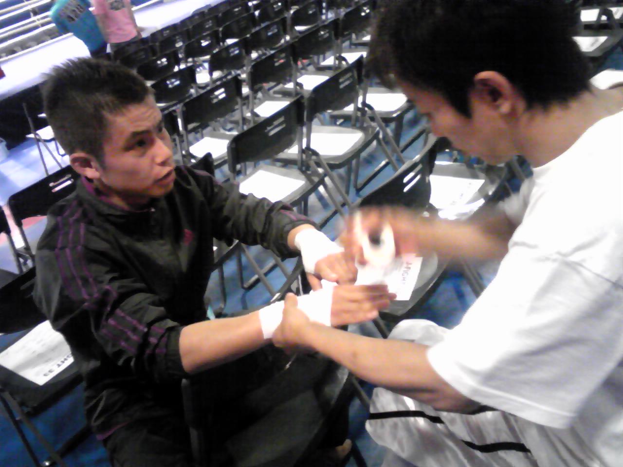 今回は中島選手だけでなく新人王トーナメントに参加するTSXの林敬明選手のコンディションも試合前に整えさせてもらいました。施術後には「脚も腕も軽い!!」と喜んでいただけました\(^o^)/