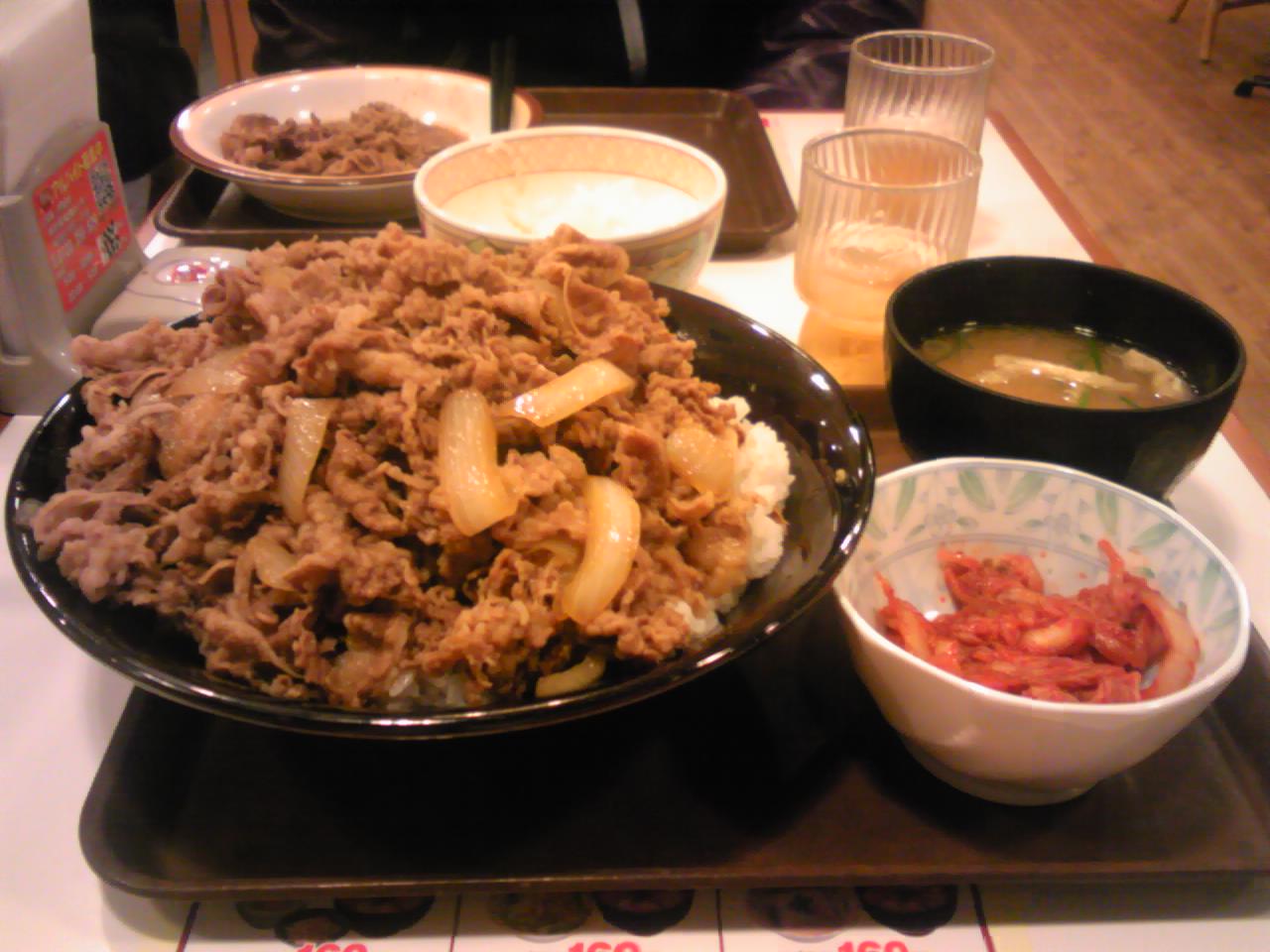 牛丼キング!!ごはんが大盛りの2倍、肉が並盛りの6倍、出てきたときは笑いましたがもくもくと食べ進む。