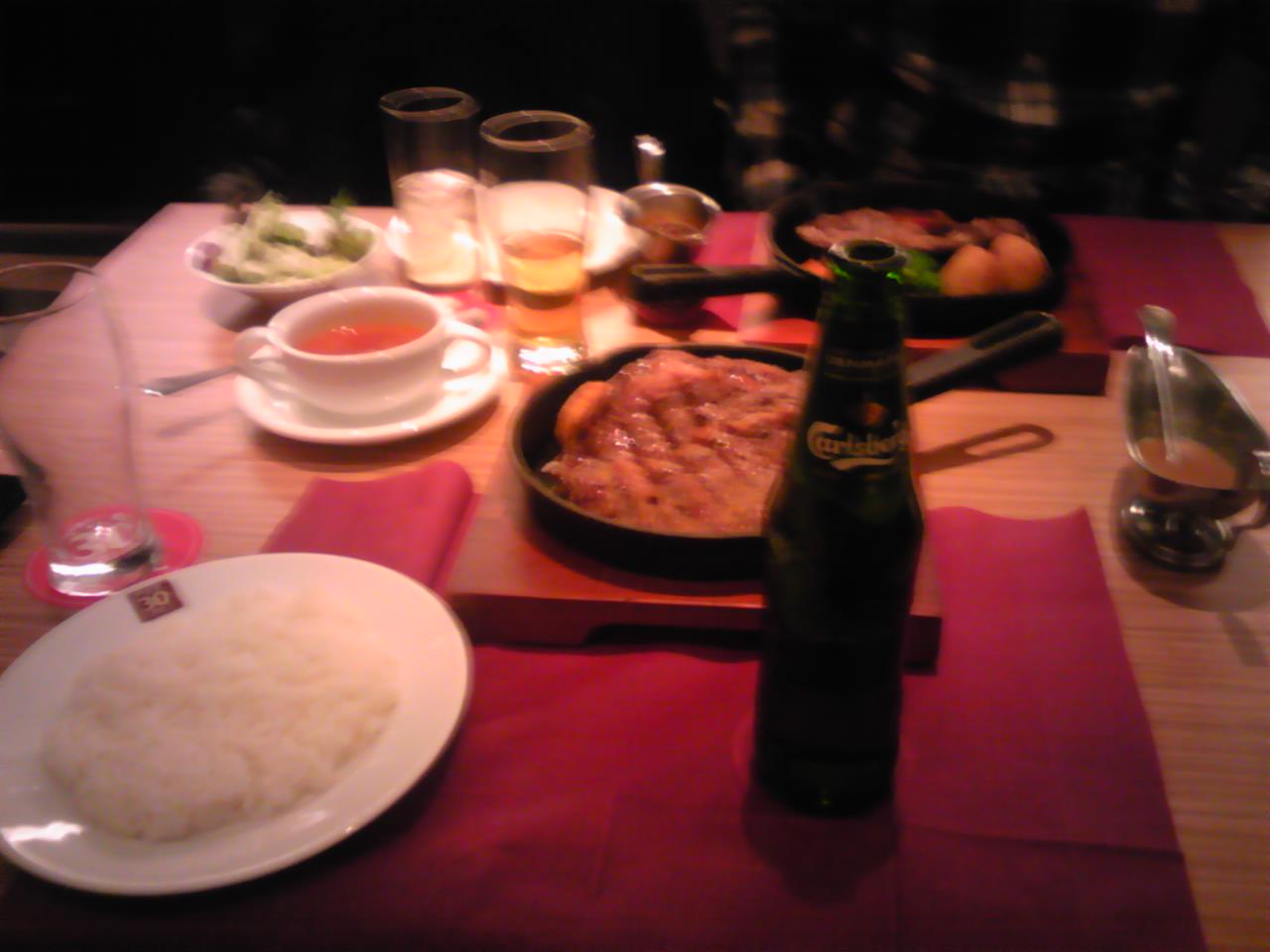 らーめんが食いたいというおっくんに「今夜は絶対肉が食いたいっ!」といって溝の口まで付き合ってもらい、NOCTYの上にある夜景のきれいなレストランでディナー♪周りカップルだらけの中男2人でディナー♪でも俺たちは夜景の見える席には通してもらえない(T_T)