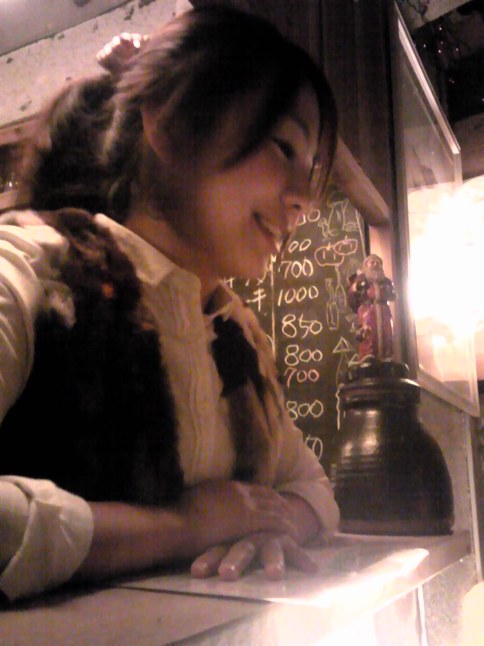 4月にアクセルでマスターのヤイさんと俺が二人で飲んでたらやってきたみきちゃん、バイトの話を断りにきたはずなのになぜか次の日からアクセルで働くことになったみきちゃん(笑)