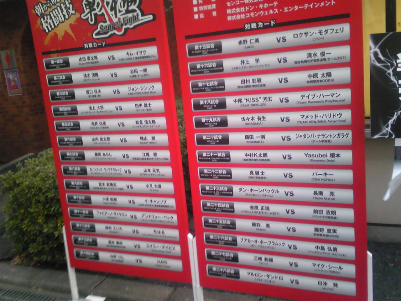 会場は寒いけど熱気溢れる試合を観させていただきました\(^o^)/前田選手の試合が個人的には楽しかったです♪敗れた金原選手も凄かった(゜o゜)めちゃ打たれ強い!!心も身体も強い選手ですね。