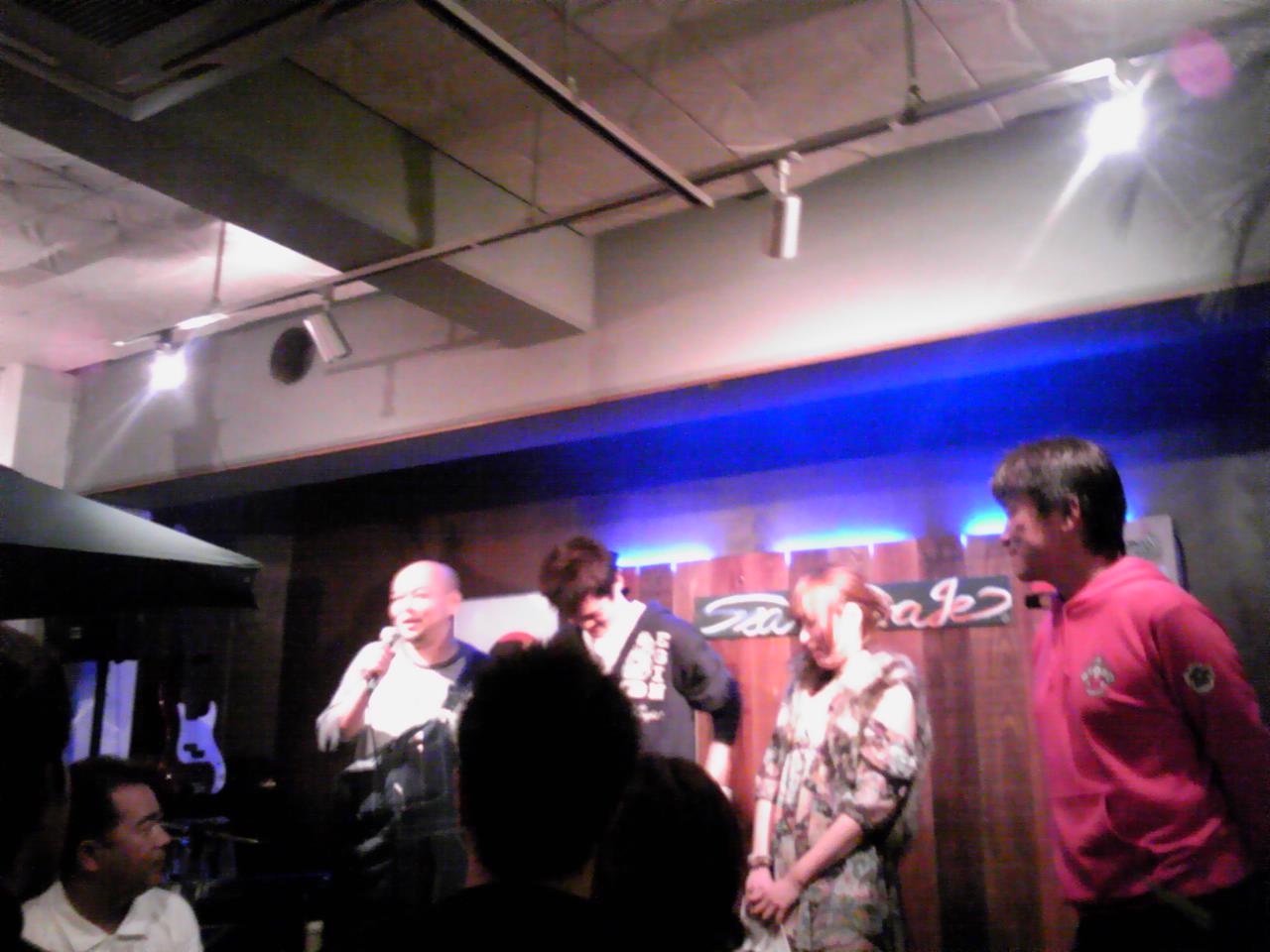お祭りも終わって最後にみんなで打ち上げです\(^o^)/この方たちはお祭りに出演して下さったミュージシャンのnacilさん。沖縄出身のミュージシャンということで私も親近感がわきました(^^♪そんなnacilさんのHPはこちらhttp://www.nacil.net/index.htmちなみに右横のピンクのパーカーの方が玉山会長ですヽ(^o^)丿