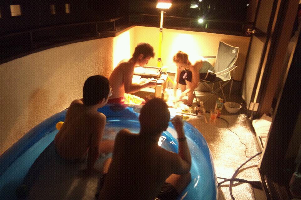 ってことで、先日つよしさんから誘っていただき、田中家の4階ベランダでBBQしてきました(^o^)v