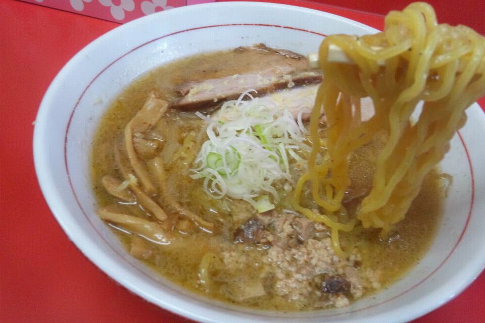 玉ねぎと挽き肉の甘味、濃い目の熱々スープ、スープに絡まる麺、生姜の風味、これぞ、北海道味噌らーめんって感じでしたね♪