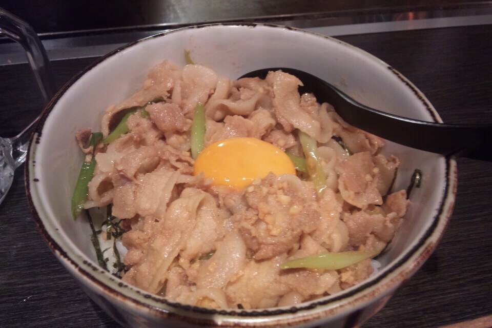 ニンニクたっぷり、濃い目の味付けの豚バラ丼、どーらまいうー(*≧∀≦*)
